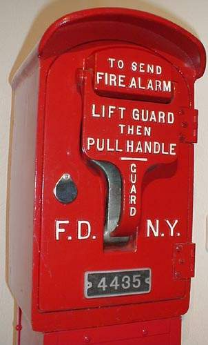 Originaltext: "To send Fire Alarm - Lift Guard then pull Handle" |