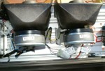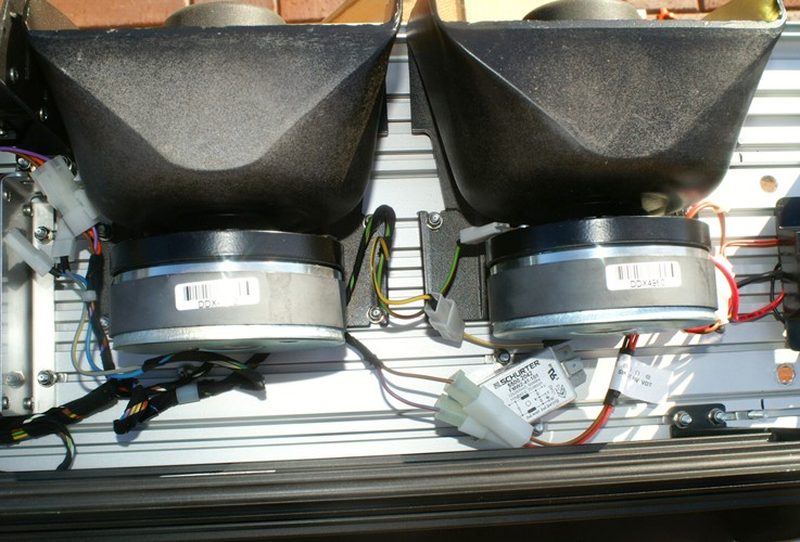 wenn der Drehspiegel nach vorn zeigt. Zwei Lautsprecher nach vorn,